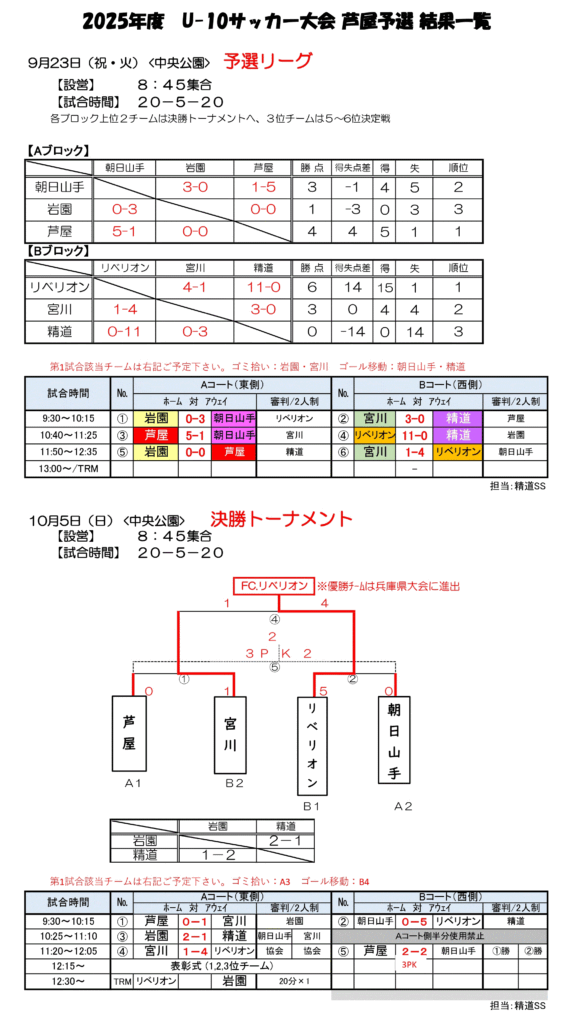 2025年度 DAICEL CUP 第52回兵庫県U-10サッカー選手権大会 芦屋地区予選が、9月23日(火・祝)と10月5日(日)に、芦屋中央公園で開催され、FC.リベリオン4年生チームが優勝しました。